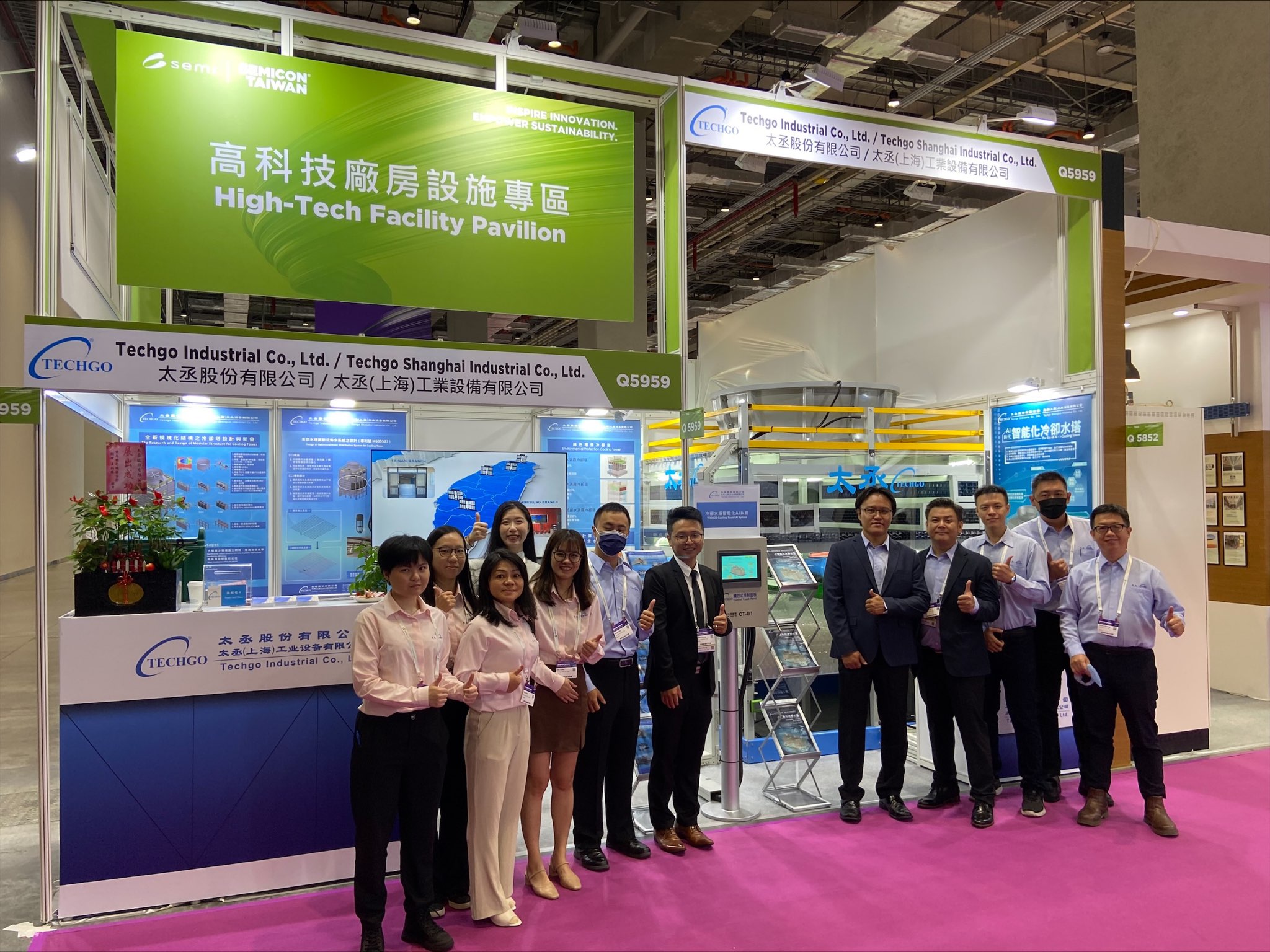 Group photo of Techgo team in the SEMICON exhibition in 2022