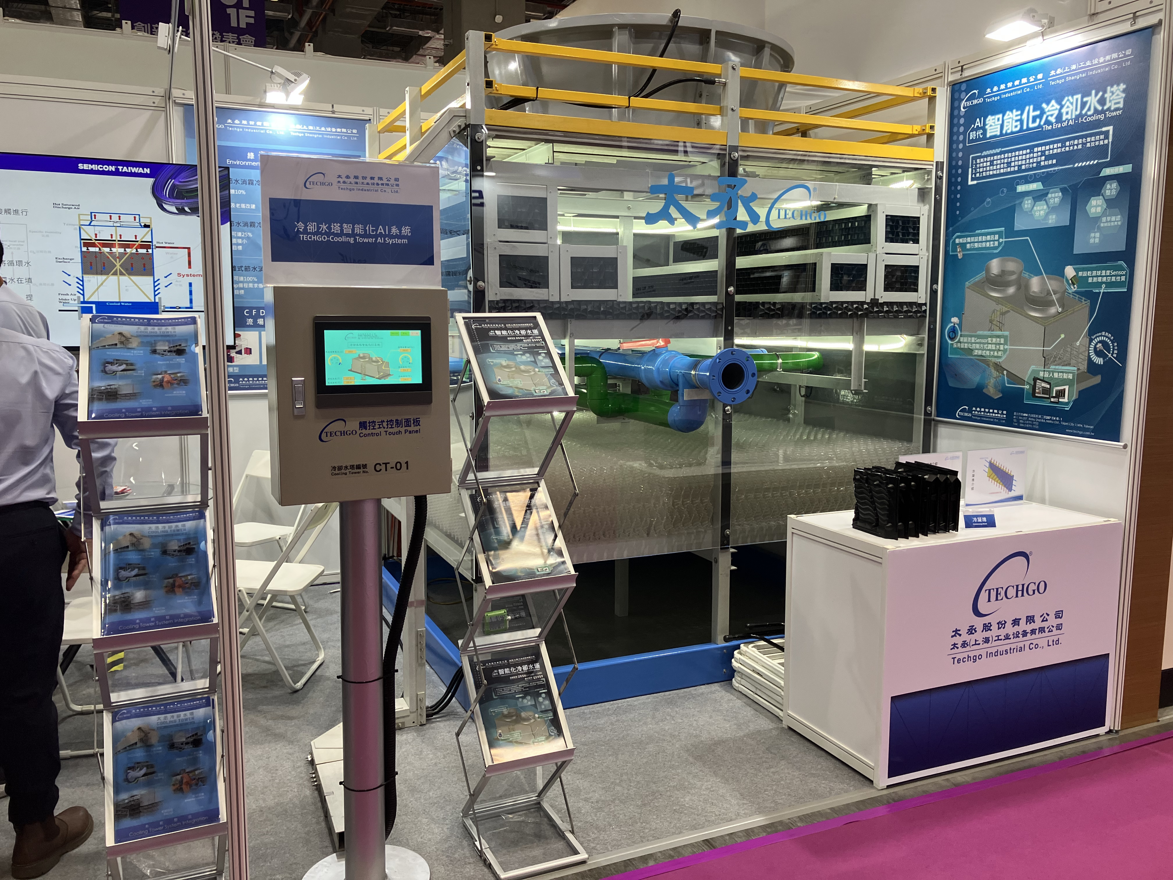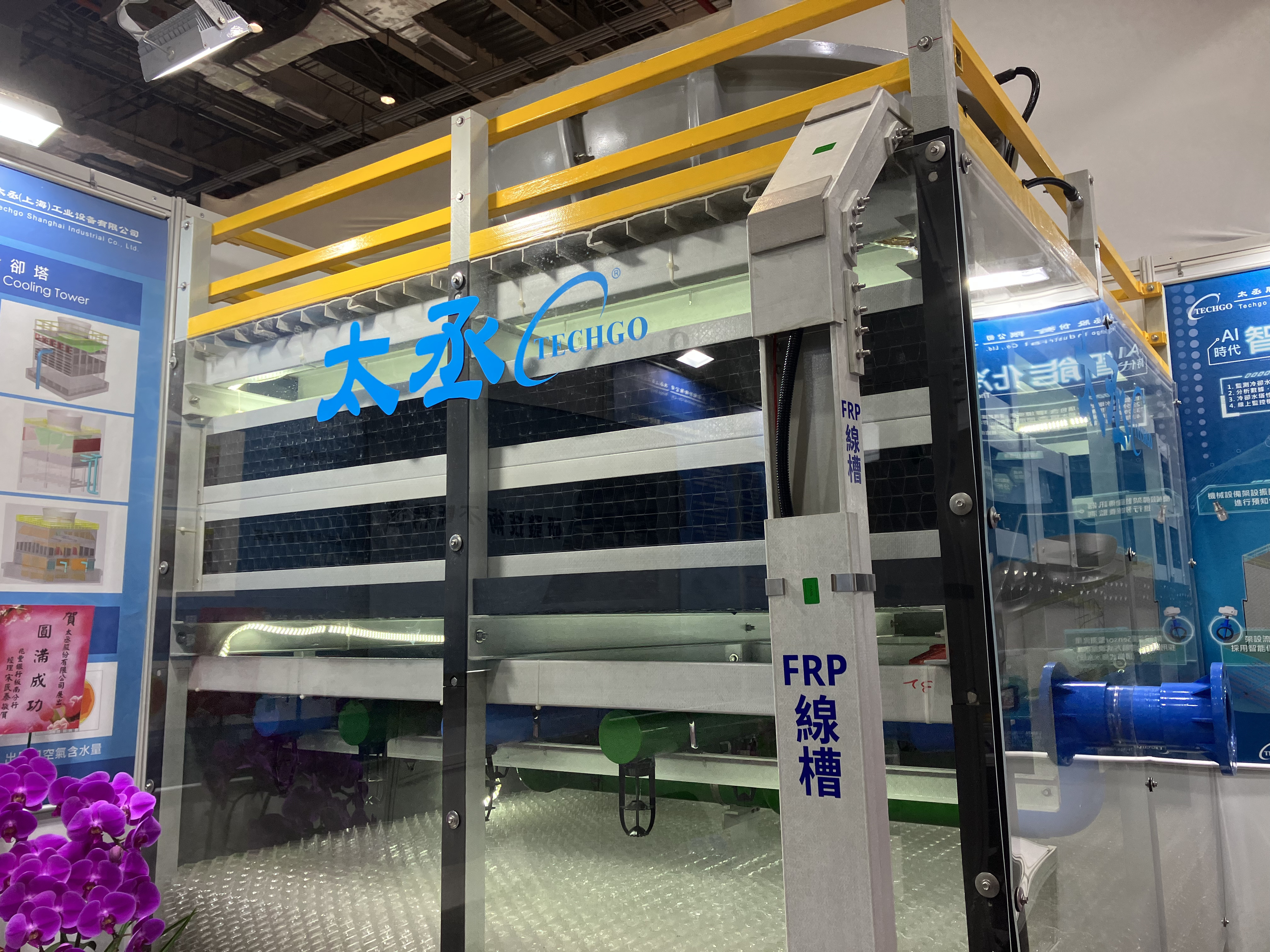 At our booth, we’re featuring the i-cooling tower system, including the HMI interface, cooling tower, along with a touch panel and FRP cable trays.